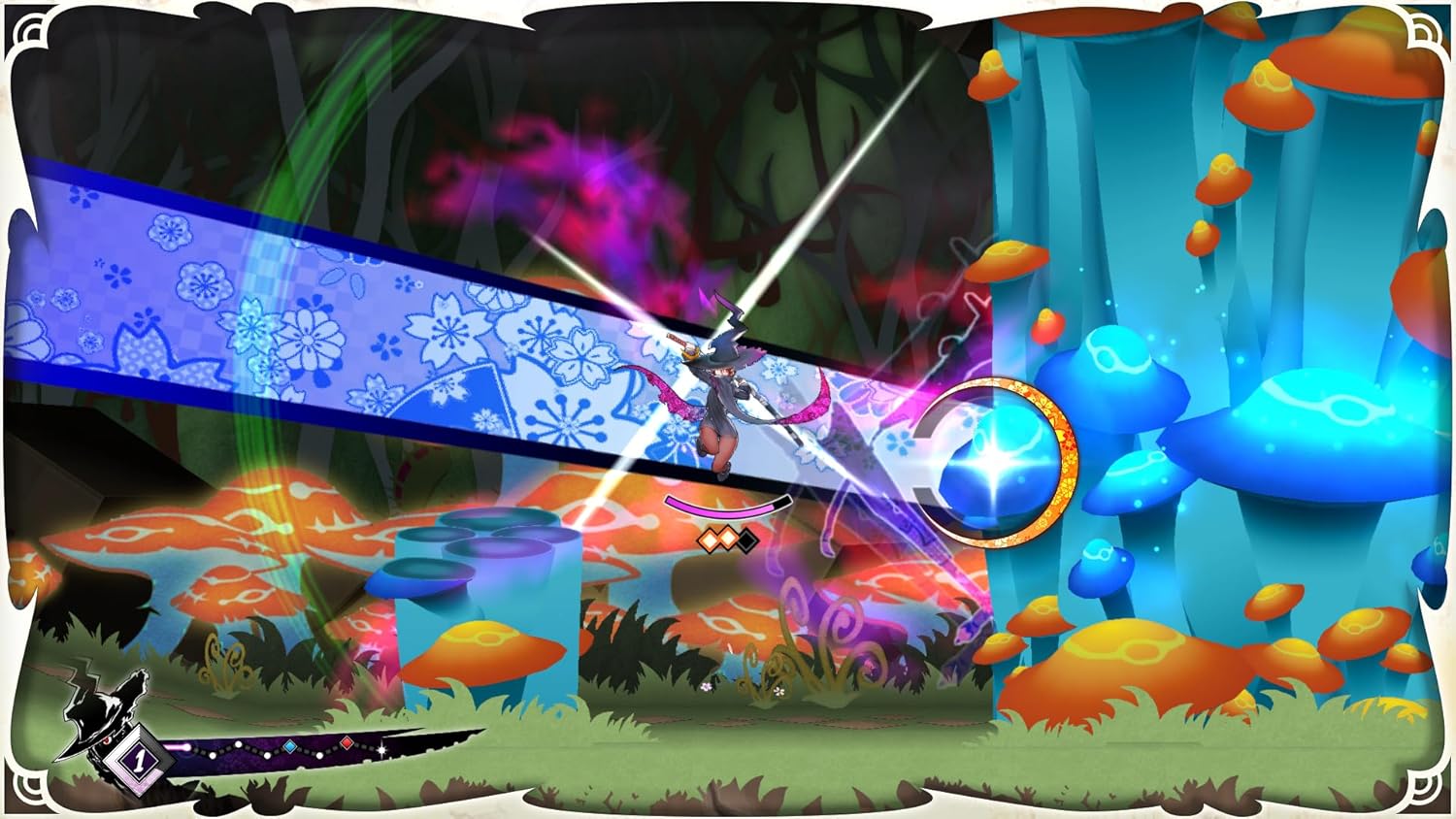 『魔女ガミ』は記憶喪失の魔女「シロハ」が紙キレの姿となったシロハの父「シオリ」と共に、 その手に持つ刀「カミキリ」でカミの化け物たちを斬って、奇々怪々の世界を駆け抜けていく2D横スクロールアクションゲーム!